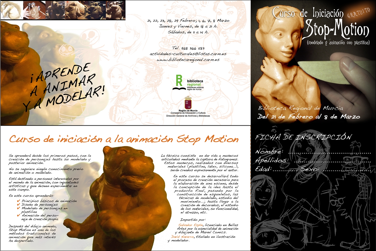 informativo "Cuso de Iniciación Stop-Motion", con hoja de