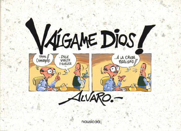 "Válgame Dios!". ÁlvaroEditado por: NausícaäISBN: 84-96114-54-6 Editado por Nausícaä en junio de 2004, esta publicación firmada por Álvaro (Álvaro Peña) inaugura "La Tira de Gracia", colección de tiras de prensa de autores -murcianos o no- publicadas en la prensa regional desde finales del siglo XIX hasta nuestros días. La colección está dirigida por Paco Olivares. Cada libro es obra de su autor, eligiendo él mismo los materiales gráficos que lo compondrá y el formato que mejor ubique su tipo de dibujo. Así, cada volumen es diferente en cuanto a medidas, número de páginas y, por supuesto, estilo. Éste de Álvaro Peña está encuadernado en rústica, tiene 220 páginas, de 21 x 15 cm, apaisado. |