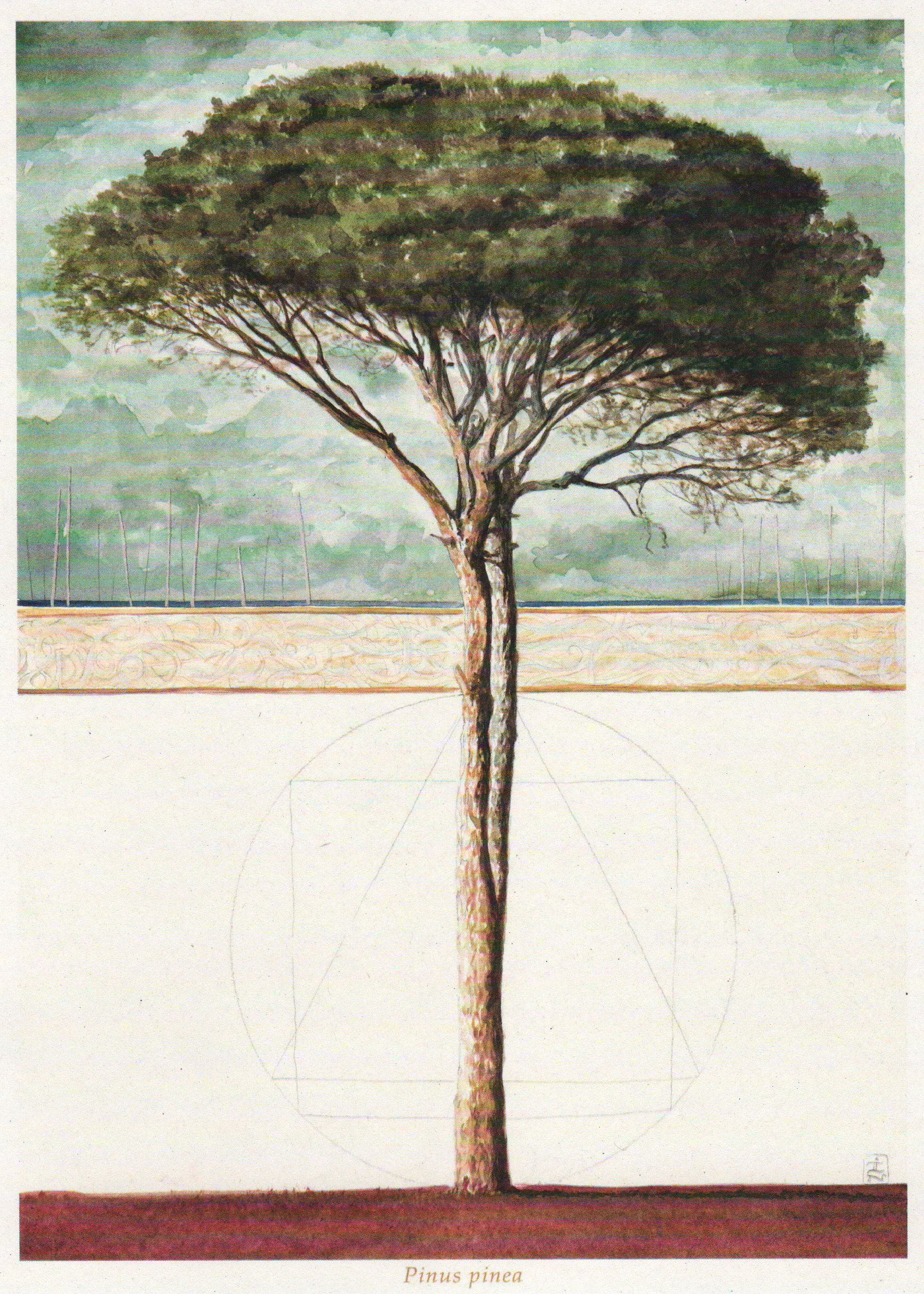 La serie de acuarelas "Árboles" -Pinus pinea en la imagen, y