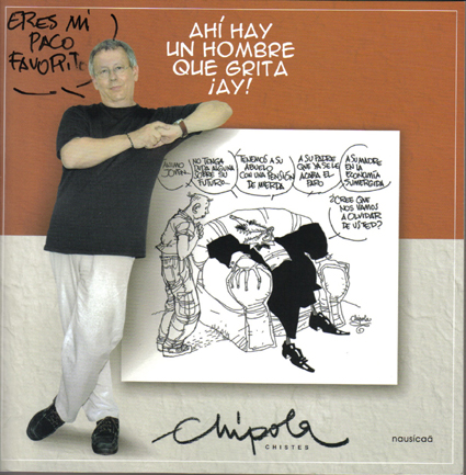 "Ahí hay un hombre que grita ¡Ay!". ChipolaEditado por: NausícaäDirector de la colección: Francisco Olivares Editado en 2005, recoge una selección de chistes de Joaquín Abellán, Chipola. |