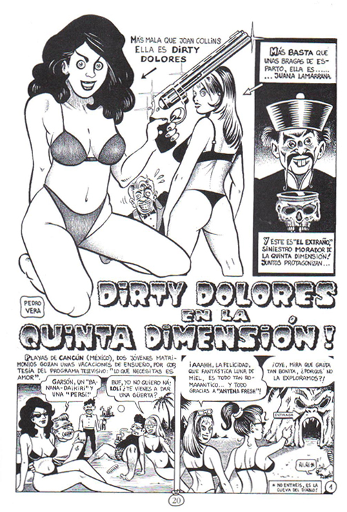 Sus primeras lecturas son Mortadelos, aunque lo que mejor recuerda son los "Vampus" y los "Rufus" que un tío suyo le suministraba. La estética y las historias que allí se narraban le parecían fascinantes. Sus ojos devoraban las viñetas de Auraleón, Leo Durañona, José Ortiz, Richard Corben. Adoraba aquellos claroscuros, aquel dominio del blanco y negro, aquellas historias de terror, de suspense. Después vino el descubrimiento de Jack Kirby, con una serie de doce números basada en la película de Stanley Kubrick "2001, una odisea del espacio". Con este autor americano, Pedro Vera confiesa que llega al éxtasis. El trazo, la elegancia y el dinamismo son las virtudes que más valora el dibujante murciano del padre, por excelencia, de "Los 4 Fantásticos". El cine es otra de sus pasiones y recuerda que en su infancia y adolescencia (incluso hoy día) le encantaban las películas de Terence Hill y Bud Spencer. Después, en los años de juventud, sus gustos se inclinan hacia las obras de Kubrick ("Senderos de gloria", " 2001", "Espartaco".), David Linch ("Corazón salvaje", "Terciopelo azul") y Coppola, sobre todo con su "Apocalipsys Now". En 1993, mientras estudia Derecho en la Universidad de Murcia, decide presentarse al Concurso Murcia Joven y su esfuerzo se ve recompensado con el Premio al Mejor Guión. En 1994 gana el Concurso de Cómic Ciudad de Cornellá y empieza a publicar en "El Tío Saín", revista de la que es miembro fundador; luego lo hará también en otras publicaciones nacionales de la época como "La Comictiva", "Kovalsky Fly", "Annabel Lee" y "Subterfuge". El trabajo de Pedro Vera empieza a conocerse y a valorarse, por eso no es de extrañar que en 1995 fuera nominado "Autor revelación" en el Salón del Cómic de Barcelona. En 1996 vuelve a ganar en el Concurso Murcia Joven y comienza a publicar su serie "Ortega y Pacheco" en el diario La Opinión de Murcia. Un año después colabora en la revista "Ruta 66" y continúa haciendo historietas para "El Tío Saín", creando para ésta el personaje Nick Platino. Sus cómics hilarantes, llenos de humor bruto y directo, llegan finalmente a manos de "El Jueves", que decide ficharlo en 1998. Desde ese año y todas las semanas, sus "hijos" Ortega y Pacheco (dos personajes a caballo entre Paco Martínez Soria y Bud Spencer, inspirados en los asesinos de la matanza de Puerto Hurraco) no dejan títere con cabeza. Tampoco sus revisiones a la actualidad sociopolítica y las "celebrities". Considerado hoy uno de los dibujantes más importantes de la revista, ha publicado varios monográficos de Ortega y Pacheco (colección "Pendones del Humor") y un libro sobre su obra dentro de la colección "Lo más mejor de El Jueves". Pedro Vera cuenta con un nutridísimo grupo de admiradores y seguidores fieles por toda la geografía española, con los que colabora en charlas, exposiciones, ilustrando portadas de discos (como el pack de "Los Reyes del crimen" para Manga Films) y carteles, como el realizado en 2008 para el cortometraje "O Labirinto Ario" de la Asociación Chantada Films.