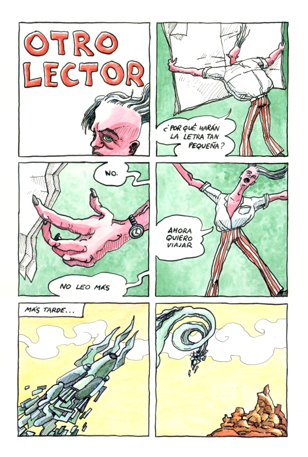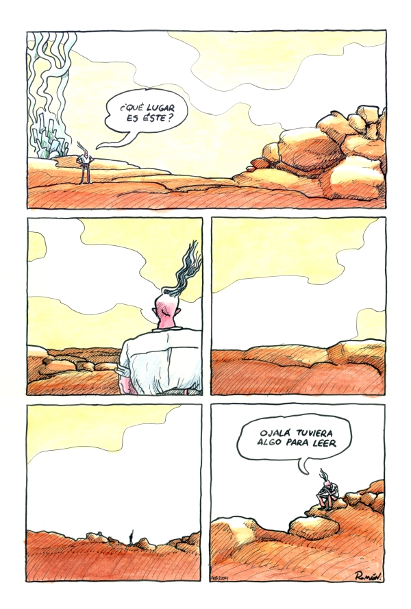 Román García Albertos. El Aaiún (Sáhara), 1963 Dibujo tebeos casi desde el momento en que descubrí qué punta del lápiz era la que se mordía y cuál no, aunque realmente me han publicado muy poquitos. Aparte de algunas caricaturas de músicos enviadas a la revista Semana cuando era un niño, dibujos de monigotes (hechos directamente en clichés de multicopista) para la revista Círculo de la OJE en los 70, y el Termofanzine de Radio Termita de 1985 (hecho en fotocopias), lo primero que hice oficialmente en este mundillo fue ganar el Segundo Premio del concurso Murcia Joven Cómic 85/86 con la historieta de una página "El lector", que apareció publicada en la revista Murcia Joven Cómic (1986), y que también se pudo ver en la exposición Murcia Joven del Salón del Cómic de Barcelona en 1988. Con el tirón del Murcia Joven publiqué "Cuentagota" (Coscu , 1987), "Marzlix" (Esta Región , 1988), "N\'ga y N\'ge" (Periódicamente Trips , 1988), y "Niños" (Boca a boca , 1990), historieta de una página que fue seleccionada para participar en la exposición Qué joven tebeo, Murcia (Universidad de Málaga, 1992). Otras historietas de esta época que también aparecieron en diversas exposiciones fueron "Pepito el Mercenario", "La justicia caerá por su propio peso" y "Benito y el arbolito", historieta en color de cuatro páginas realizada para la exposición itinerante Murcia Joven 1984-1990 . Después de esto, creo que no hubiera vuelto a publicar nada más de no ser por la insistencia de Manolo Martínez, que prácticamente me obligó a realizar "Cosas de la vida" para El Saco del Tío Saín (1995), y "Sucedió en abril" y "Las aventuras de Dios" para El Tío Saín (1998). Lo último que he publicado ha sido la historieta "Paseando", que apareció en el catálogo de la Exposición Homenaje a José Manuel Campillo (2004). En total, apenas veintitrés páginas de historietas publicadas en veinte años. No está mal. Fuera del dibujo, pero dentro del mundo de la historieta, impartí algunos talleres en varios colegios de Alcantarilla entre 1987 y 1988, y más tarde otro para Cruz Roja Juventud en 1993. En la ya mencionada Radio Termita, también colaboré en dos programas dedicados a los tebeos entre 1984 y 1985: Ramón y Román y Los 4 Fanáticos. Además, en 1992 colaboré esporádicamente con la editorial Planeta-Agostini como \'asesor crítico\' a sus publicaciones de la línea Cómics Fórum . En cuanto a diseño e ilustración, he colaborado en portadas de discos de Siniestro Total (1986), Doble Cero (1989), Los Enemigos (1996), Joaquín Talismán (2002), Grrr! (2005), y por supuesto, Los Marañones, aparte de diseñar un buen montón de entradas y carteles para conciertos. También he practicado el dibujo arqueológico, realizando trabajos de campo y de laboratorio para el Centro de Estudios Árabes y Arqueológicos "Ibn Arabí", de Murcia, entre 1990 y 1991. Y, supongo que como casi todo el mundo, desde 1997 también me dedico a lo del diseño de páginas en la Internet.